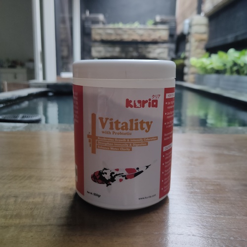 Kuria Vitality is 100% natural extract from rich volcanic eart and riverbed deposit. It contains more than 108 trace mineral elements. By using Kuria Viatality in your pond/aquarium, you will be replicating the soil component of a wild pond environment that will make your fish.